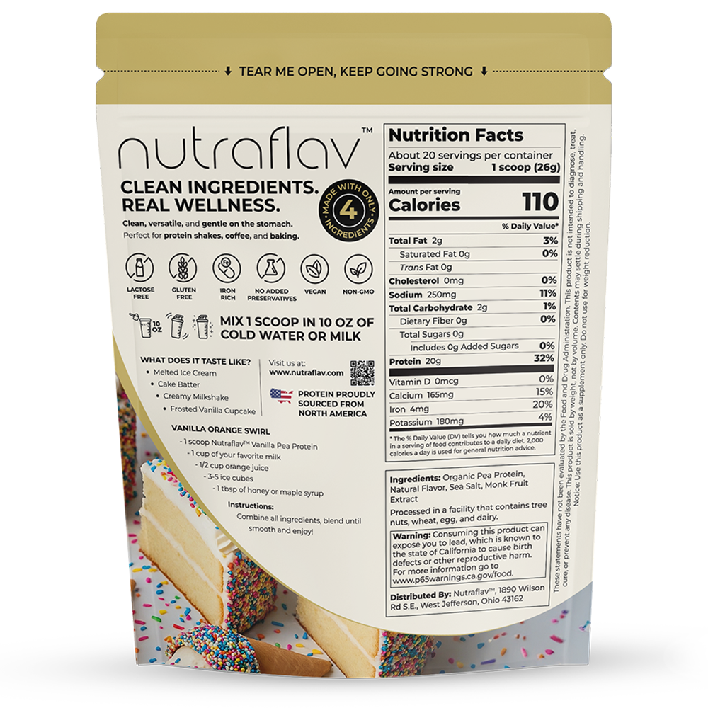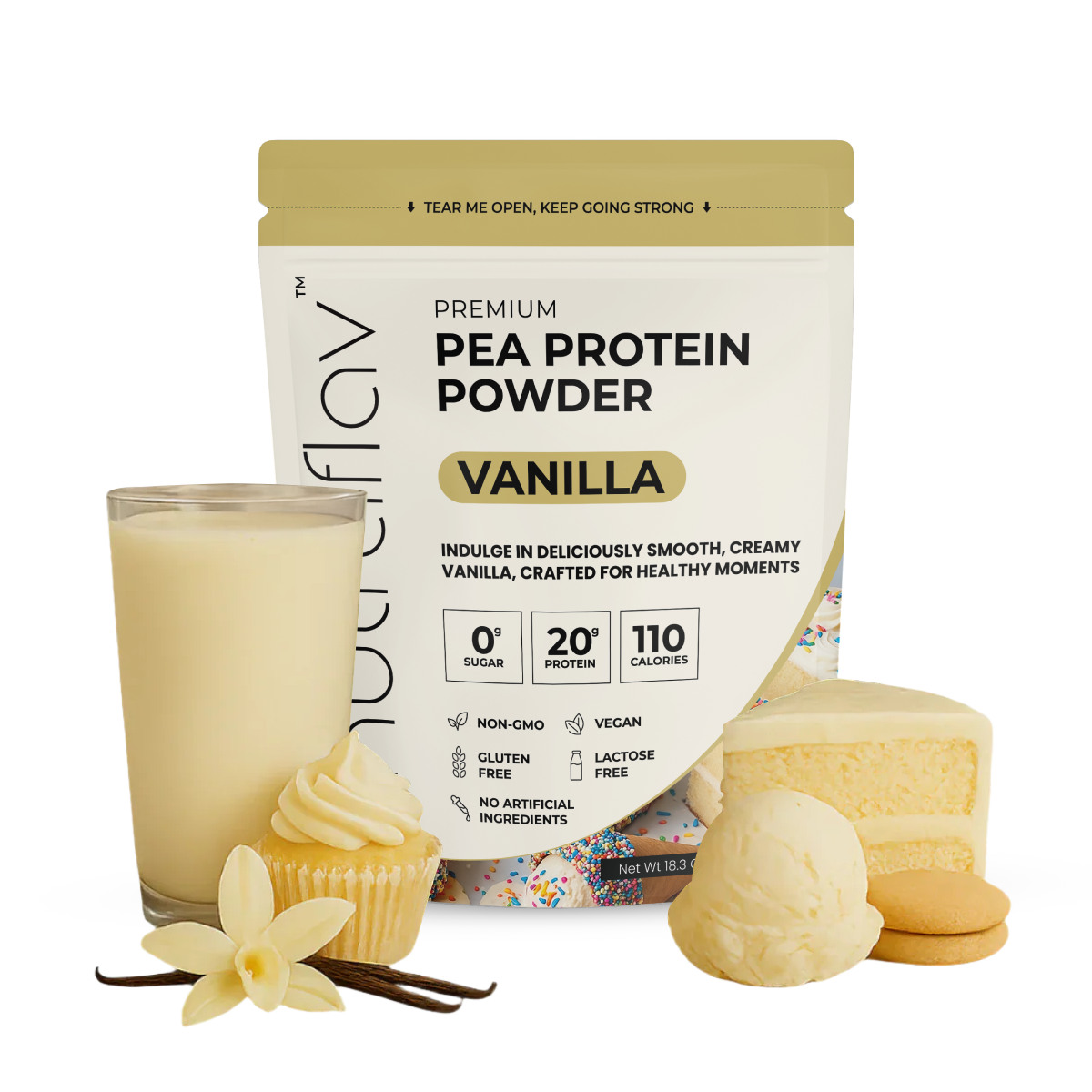 NutraFlav Pea Protein Powder is your clean, plant-based solution for daily nourishment Protein. Made from 100% non-GMO yellow peas grown in North America. Naturally free from dairy, soy, and gluten—making it perfect for sensitive stomachs. With high protein content and natural iron, it supports muscle recovery, sustained energy, and everyday wellness without any unwanted additives.
